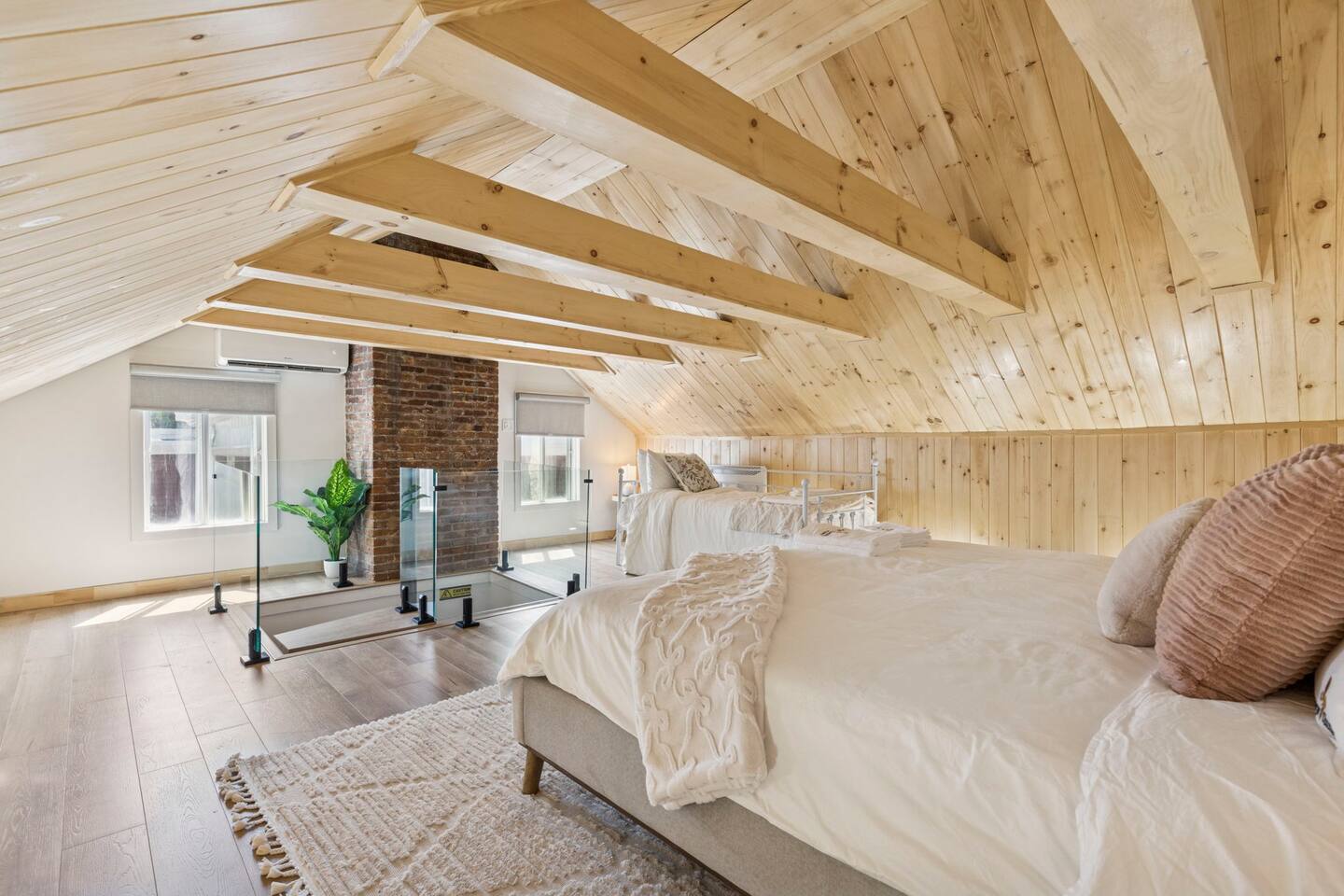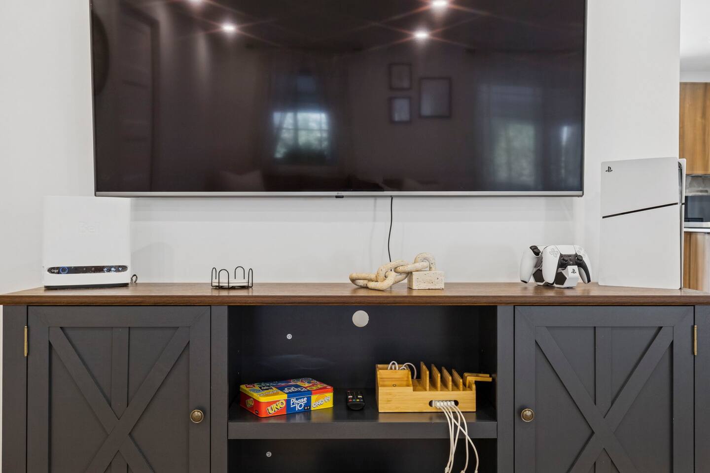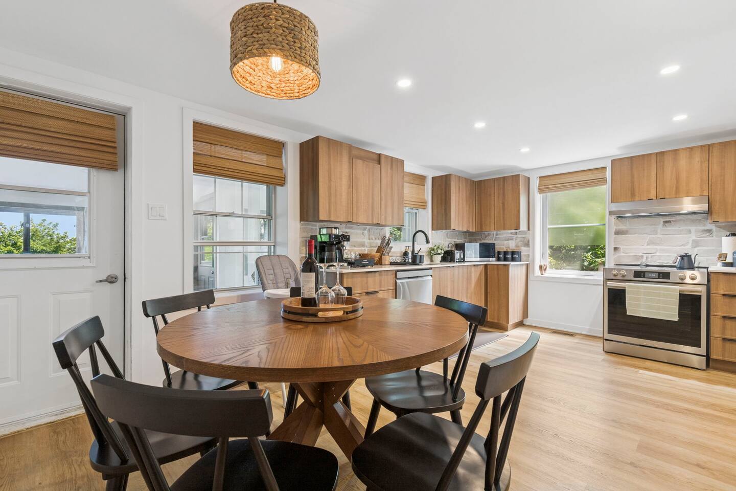 Welcome to Escapade Chambly! An 8BR retreat in two adjoining units in a beautifully restored historic home. - Enjoy 8 Bedrooms, including 2 unique attic rooms. - 2 Fully equipped kitchen & 4 full bathrooms - Private dock with stunning lake views. - 2 Outdoor Private Jacuzzis. - 2 BBQs & outdoor dining space. - 2 Fire Pit. - Yoga mats for mindful mornings. - PlayStation 5 & Smart TV. - Indoor & outdoor games for all ages. - Private Solarium Perfect for families or groups to relax & recharge.